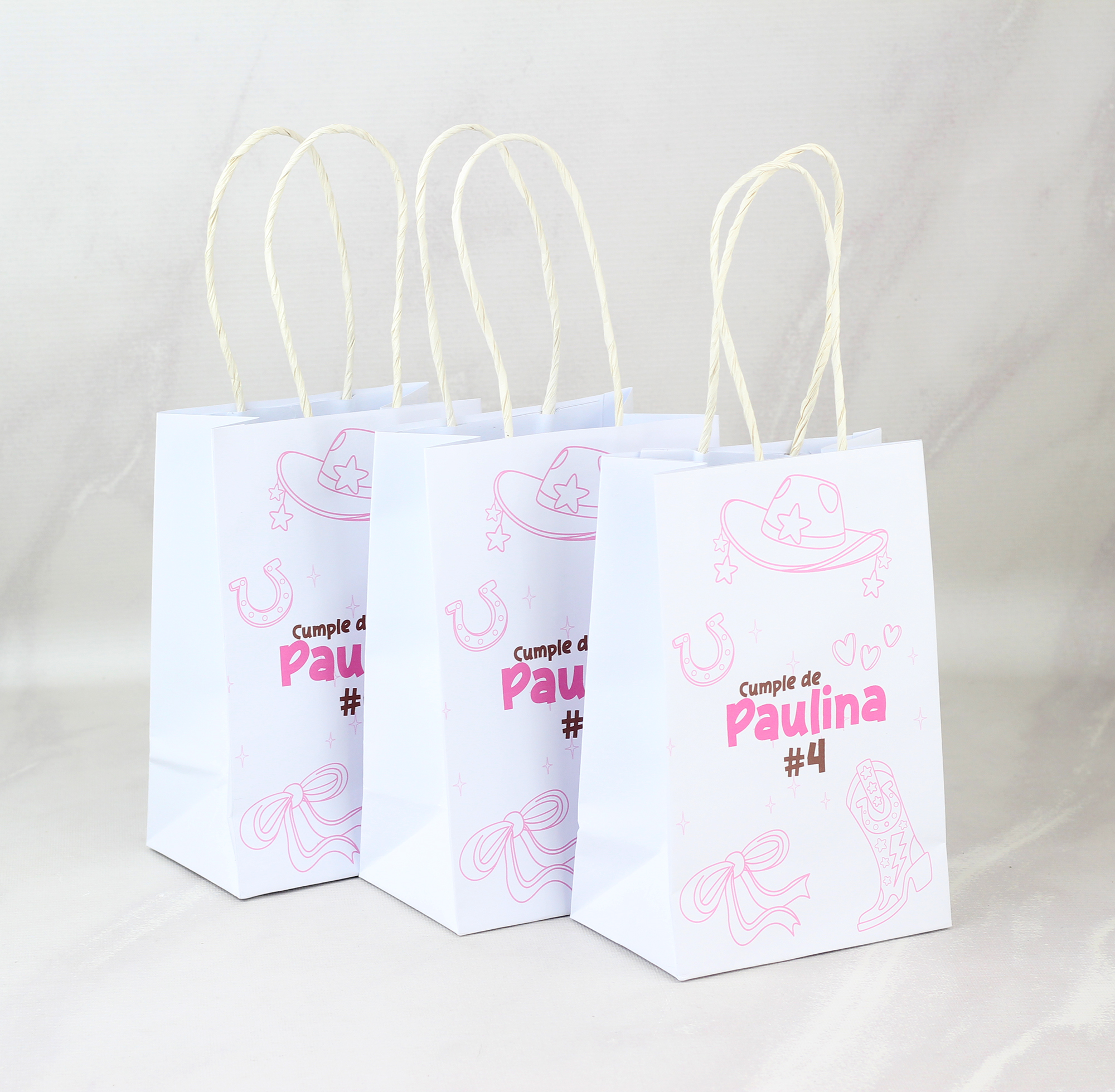 Ciento de Bolsas Boutique Impresas con Listón Medidas: 38x24x9cm.